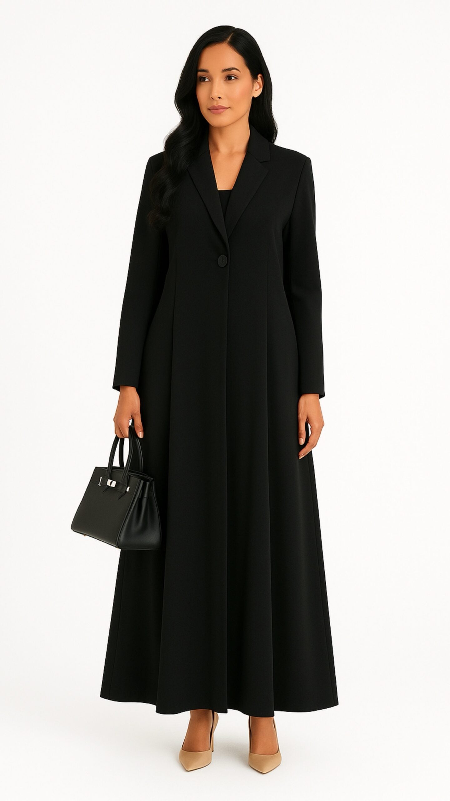 Timeless, tailored, and effortlessly graceful — the Classic One-Button Blazer Abaya blends structured minimalism with modest luxury. Designed for the woman who values sophistication in every detail, this abaya reimagines the power blazer into a full-length silhouette that’s both commanding and refined.