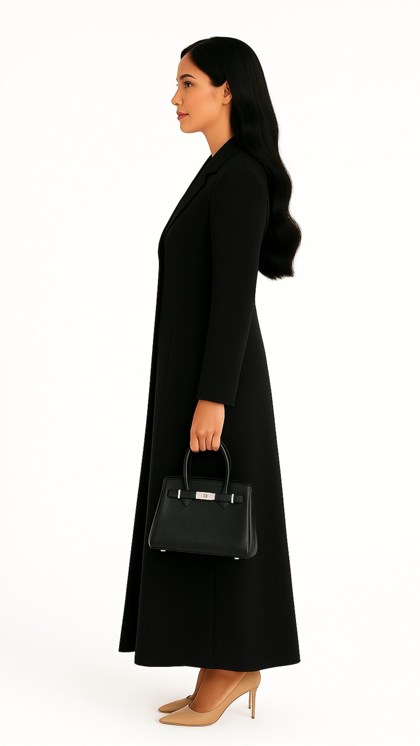Crafted from premium Korean crepe fabric, this abaya offers just the right amount of structure while remaining lightweight and breathable — ideal for both professional and evening wear.