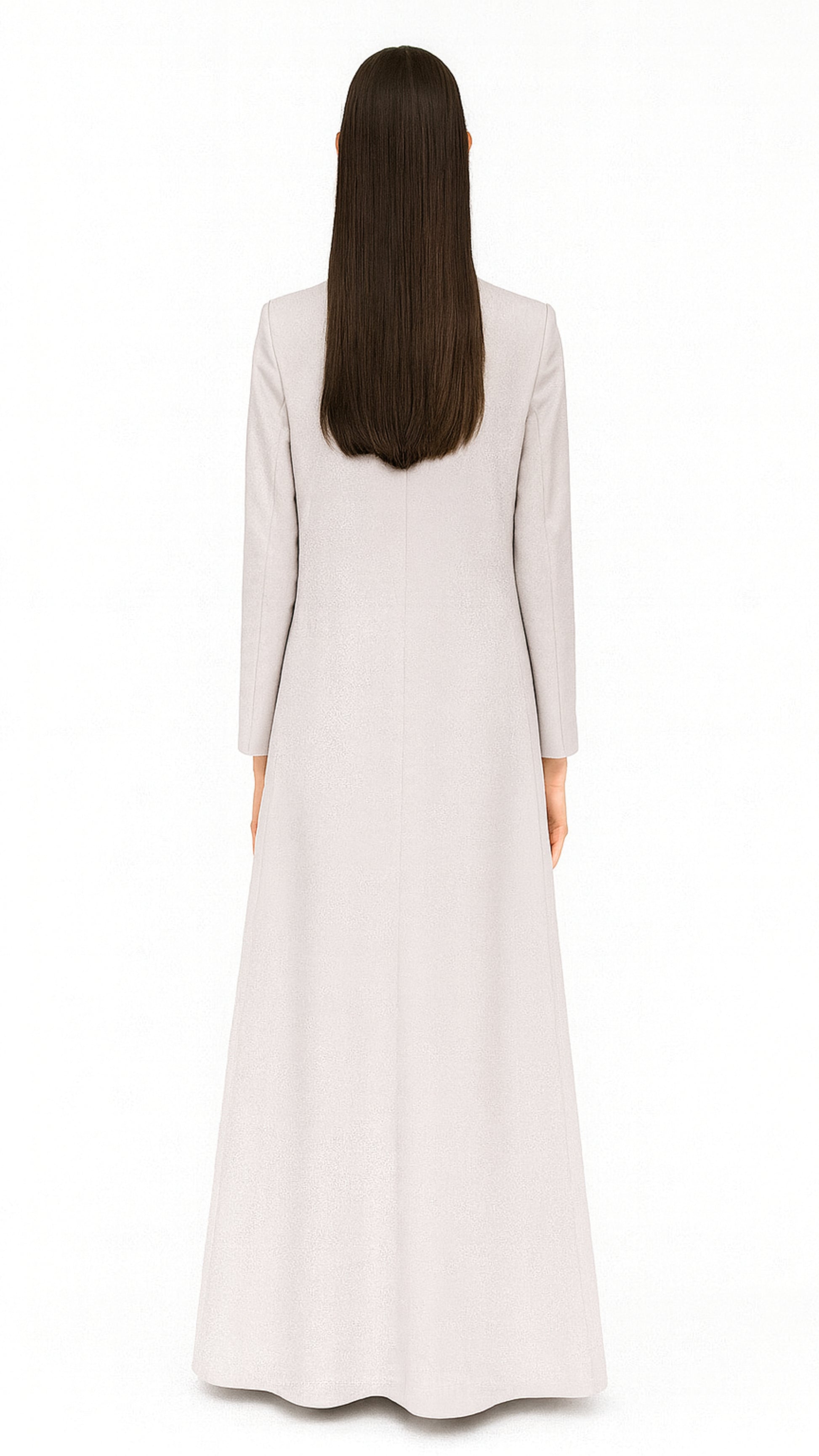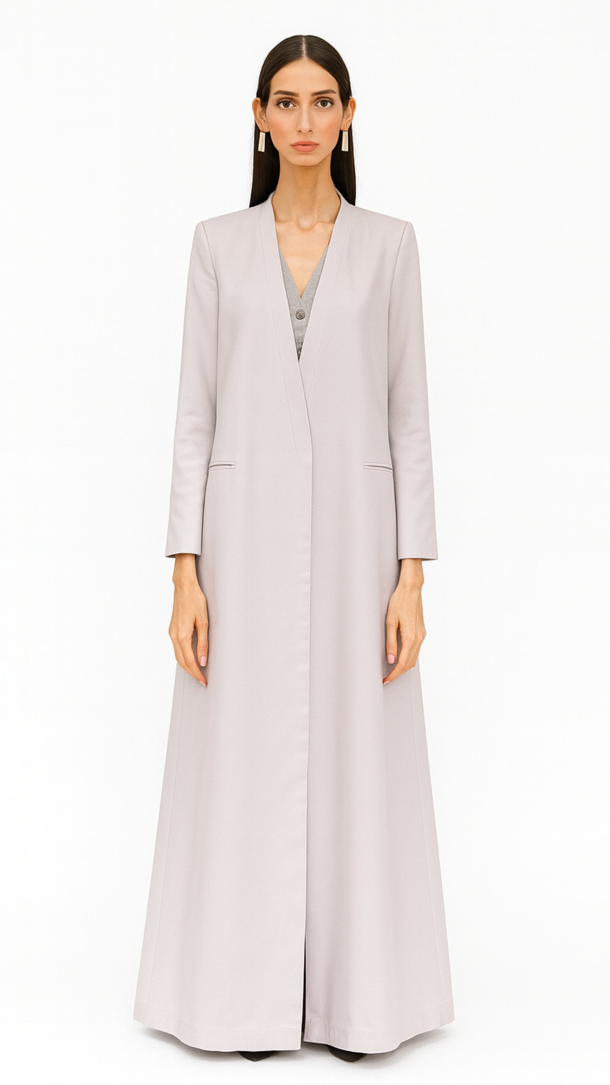 Understated elegance takes center stage in the Pearl Mist Minimalist Abaya, a design that blends modern tailoring with timeless simplicity. Crafted in a straight, clean-cut silhouette, this full-length abaya offers a refined drape that elongates the figure while maintaining a minimalist sophistication.